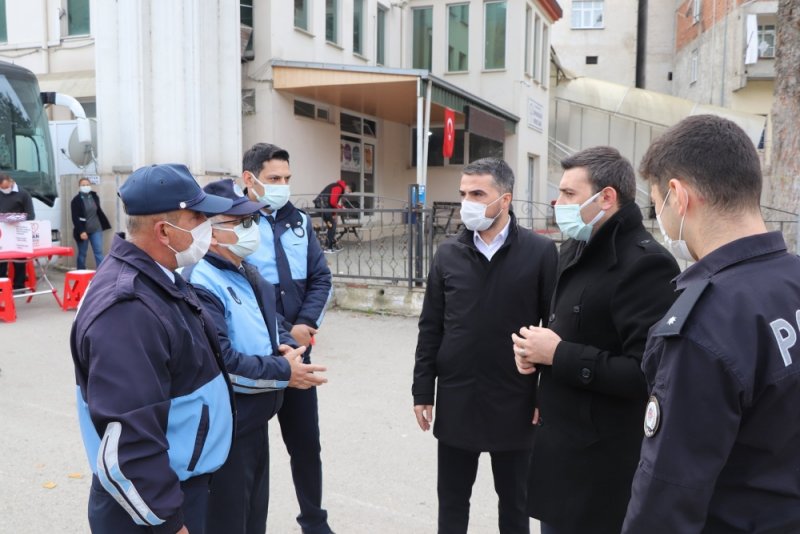 Belediye Başkanımız Sn. Halil Kalaycı “Tedbirlere hep birlikte uyarsak başarılı oluruz. Devletimiz tüm kademeleriyle koronavirüse karşı canla başla çalışıyor. Bize düşen de hep birlikte duyarlı olmak ve tedbirlere uymak. Vatandaşlarımız maske kullanımına ve sosyal mesafeye dikkat etmeli, hijyen konusunda duyarlı olmalı” dedi. Daha sonra kapalı pazar yeri bitişiğindeki Kızılay Kan Bağış Aracını ziyaret ederek çalışanlara kolaylıklar dileyip, kan bağışında bulunan vatandaşlarımıza duyarlı davranışlarından ötürü teşekkür ettiler.