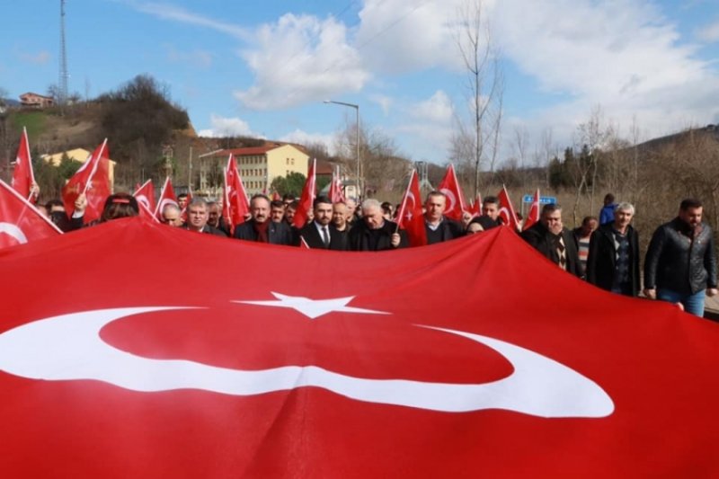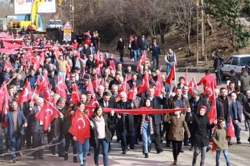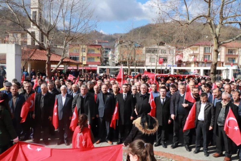 İdlib'de Türk Silahlı Kuvvetlerimize yönelik yapılan hain saldırıda şehit olan askerlerimiz için İlçemizde şehitlerimize saygı yürüyüşü düzenlendi...